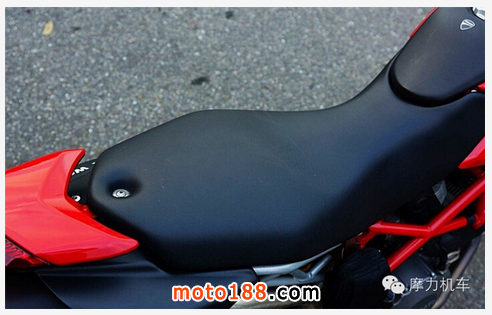 滑胎車必備的一體式窄長坐墊,不過 DUCATI 為 Hypermotard 796 稍微增加坐墊寬度與厚度后,乘坐不像標(biāo)準(zhǔn)越野車或者滑胎車偏硬,載人也不會過于難受。