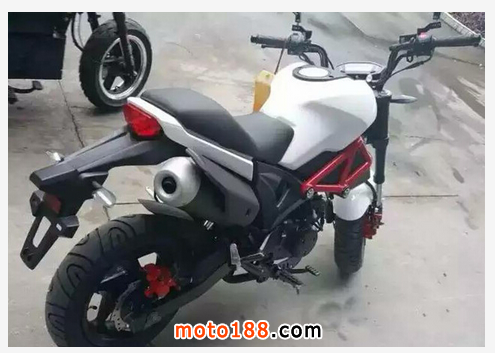 隨銀鋼華北區(qū)銷售經(jīng)理杜總進入銀鋼廠區(qū)考察,無意中發(fā)現(xiàn)一輛十分討人喜歡的小車。乍一看,這車有點相似DUCATI的新款MONSTER系列,但仔細觀察后發(fā)現(xiàn)只有油箱和大燈比較相似,其他地方都是不太相同的。