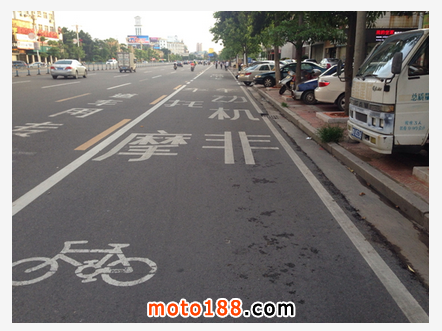 其他連接三大主干道的道路上,也增設(shè)了摩托車指示標(biāo)志,豎起了“摩托車專用車道”的指示牌。
