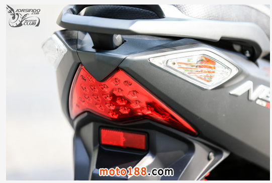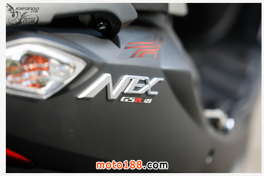 延續(xù)GSR 125車系的精神,消光霧面的NEX的logo搭配紅色線條彩繪,
