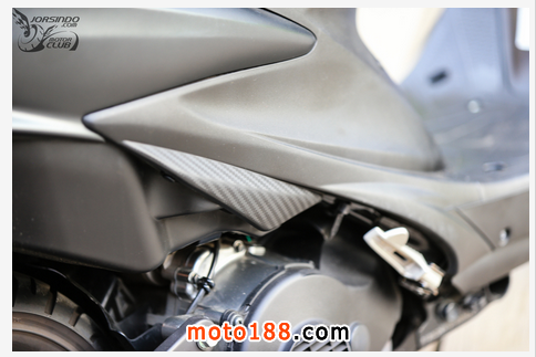 後腳踏後的飾板同樣用類碳纖維咬花處理。