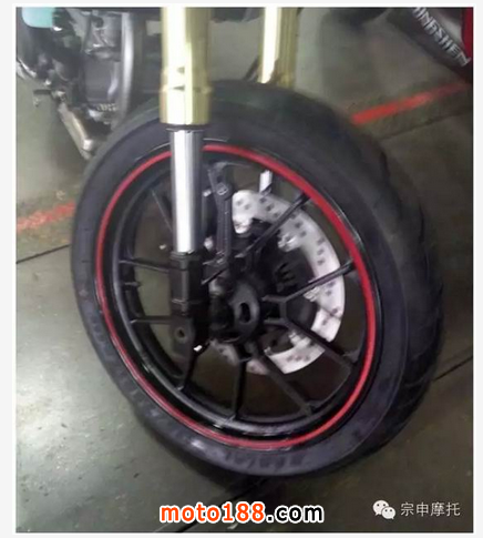 采用倒置減震,前后碟剎,前胎為120真空調,后胎為140真空胎。