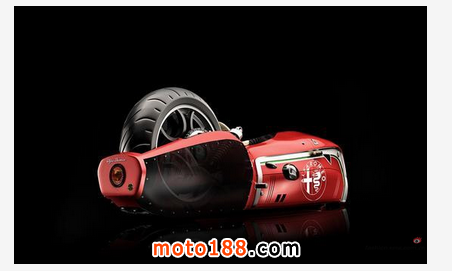 圣靈車身的后半部完美詮釋了機械的金屬暴力美感涂裝沿襲了阿爾法·羅密歐最經(jīng)典的紅色,圣靈通過其造型,性能和個性反映出阿爾法羅密歐的傳統(tǒng)Alfa Romeo圣靈概念摩托車