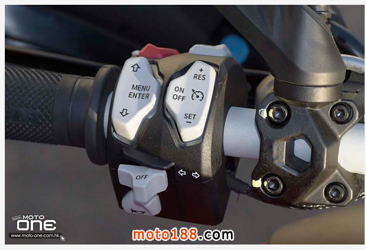 以傾角照明大燈為例,當(dāng)行車電腦感應(yīng)車身傾則入彎時(shí)便啟動(dòng)車頭的LED燈,照明黑暗的彎角,提高行車視野,這功能類似四輪上的照明系統(tǒng)。而Cornering ABS同樣是根據(jù)車身轉(zhuǎn)向角度電腦不斷地進(jìn)行調(diào)校,可避免騎士在攻彎時(shí)過(guò)度扣下掣動(dòng)桿,導(dǎo)到失去慣性轉(zhuǎn)向力引致Lowside意外。除此之外,今代車輛還有Ducati Wheelie Control (DWC)8段調(diào)校的防起頭功能,而高速公路定速巡航按鈕可讓車輛自動(dòng)行駛,還有今代車輛采用無(wú)匙啟動(dòng)車輛,并可遙遠(yuǎn)控制打開座椅。另外,車輛還加入多媒體功能Ducati Multimedia System (DMS),透過(guò)籃芽連接手機(jī)後(適合Android及IOS使用),彩色儀表成為多媒體屏幕,可聽歌、接收朋友訊息及接聽電話等等,DUCATI還特設(shè)網(wǎng)站,讓騎士分享行車資訊如行駛路線等等。