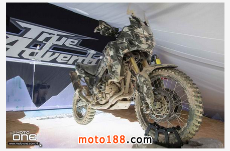 ●於2014年底舉行的意大利米蘭車展,HONDA展出了布滿泥濘CRF1000L Africa Twin原型車,旁為兩臺(tái)昔日及現(xiàn)役HONDA達(dá)卡戰(zhàn)車,Trun Adventure是形容新車是真正冒險(xiǎn)車。