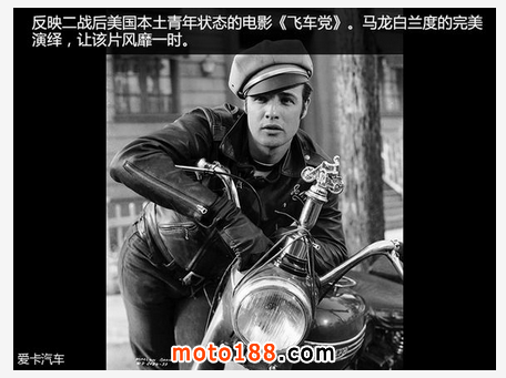 提及Harley-Davidson,也讓我想起了1953年上映的《飛車黨》,馬龍白蘭度的完美演繹,以及那句叛逆的:“我們曾經是英雄,但如今誰也不需要我們了”,讓那部電影風靡一時。這是一部反映當時美國非法機車黨的電影,起因是《時代》周刊登出的一張照片,照片描述了二戰(zhàn)后某些士兵的頹靡狀態(tài),可以說他們是當時社會的最不穩(wěn)定因素,而摩托車也成為了他們的標志之一。所以直到現(xiàn)在,摩托車在許多人們心中也是一種負面的形象。