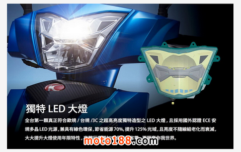 其次,LED大燈也是一個新的嘗試,目前國產(chǎn)速克達除了AEON的ES 150之外,新G6也跟進了LED大燈系統(tǒng)。