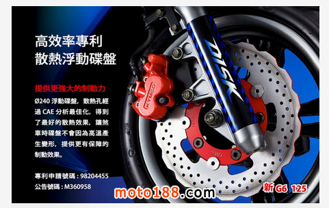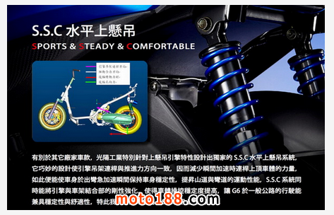 除此之外,新G6還配備頗受好評的SSC水平上懸掛,德國Bosch的9.1M ABS系統(tǒng),新的浮動式碟盤。