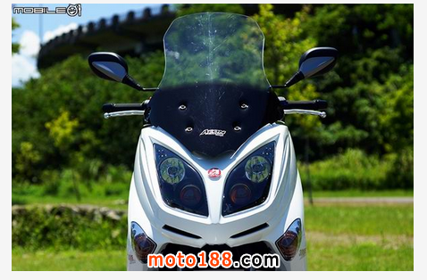 一樣從車頭開始看起,這次 Elite 300E 采用燻黑雙大燈組,大燈為遠(yuǎn)近燈獨立燈組,上方則是法國 ERMAX 的長風(fēng)鏡,對于高速風(fēng)壓阻擋有實質(zhì)加分效果,而在車頭斜角處則是方向燈組。