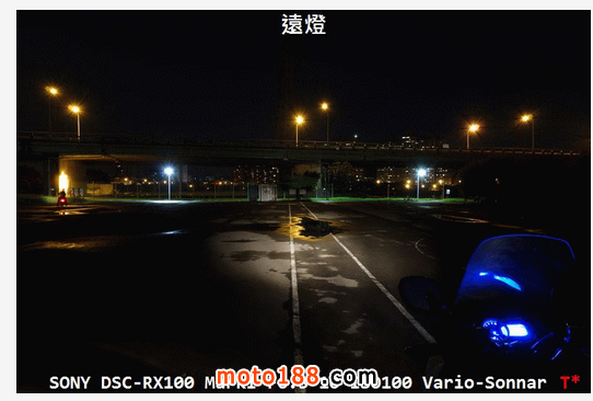 大燈照射角度實際拍攝,亮度透過相機設(shè)定,調(diào)整至與最接近人眼現(xiàn)場觀看的亮度來做比較;這組燈具雖然就外觀以及配置而言都與同廠 3D-350 相似,但打出來的燈型不知為何卻比較好一些,以近燈來說,廣度適中,亮度也集中,對于市區(qū)通勤族應(yīng)該夠用了,遠(yuǎn)燈方面也是讓人眼睛為之一亮,雖然使用較為集中的遠(yuǎn)燈燈型,但路底能夠清楚照出來,偶爾進行山區(qū)夜間騎乘也算不錯羅。