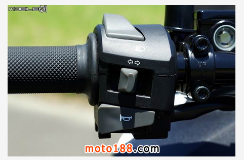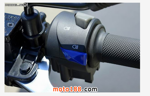 左把手前方配置超車燈開關(guān),按下藍(lán)色的超車燈開關(guān)后,遠(yuǎn)燈就會亮起。