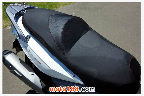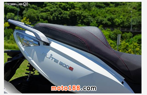 坐墊部分,Elite 300E 的前座座高為 790mm,座高方面還算平易近人;另外在坐墊皮革方面采用雙材質(zhì)坐墊皮革,加上紅色線條滾邊,營造出不同的視覺感受。