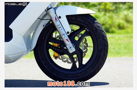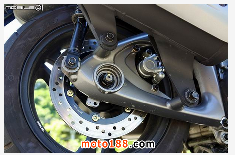 使用 256mm 的后碟盤與單向單活塞卡鉗,這種配置讓 Elite 300E 的煞車比重以前輪居多,因此騎乘時反倒更需要注意后煞車,因為前輪煞車會使得重心轉(zhuǎn)移至前輪的緣故,重心轉(zhuǎn)移至前輪,抓地力也會轉(zhuǎn)移至前輪較多,這時若不注意后煞的力道拿捏,很有可能后煞因重心轉(zhuǎn)移降低抓地力后,就造成鎖死的情況發(fā)生,因此在無 ABS 的 Elite 300E 騎乘時需要注意煞車比例的分配。