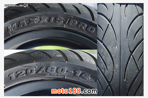 后輪采用 MAXXIS 的 M6112,規(guī)格為 140/70-14 M/C 68S。