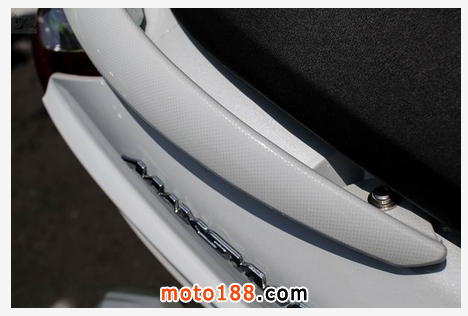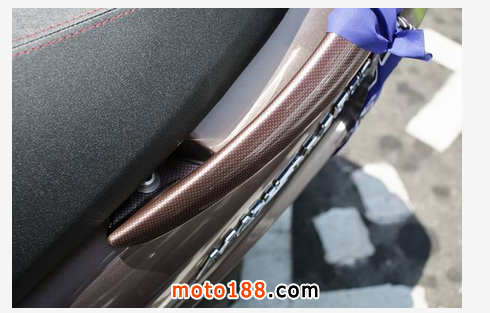 龍頭手把與後扶手部分有碳纖維花紋咬花,且根據(jù)車色(消光黑、棕、白)不同花紋顏色也有相應(yīng)的配對十分細(xì)心