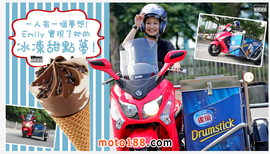 其實Emily本身是一位化妝師,工作時間頗具彈性,再加上懂得駕駛電單車,所以當政府在09年推出六十一個冰凍甜點流動小販牌照時,便決定入紙申請。當年申請情況非常踴躍,老編也有入紙,可惜輪候號碼是兩千多號,騎著電單車賣甜筒這個夢想總算是完全絕望了。相反地,Emily非常幸運地獲到較前列的輪候號碼,最後順利以後補形式,成功申請到這個珍貴的冰凍甜點流動小販牌照。