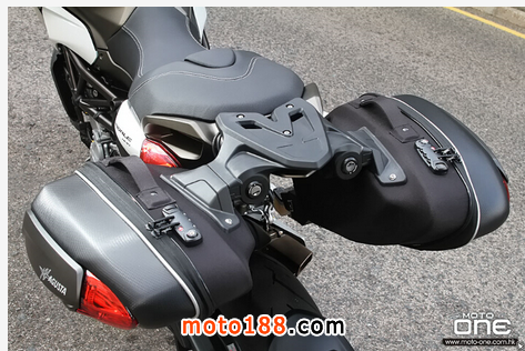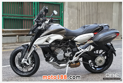 由于長途旅行車在外國市場受到前所未有重視,各大車廠也紛紛推出裝有行李袋或行李箱的車款。雖然MV Agusta已有一款裝有一對行李箱的Turismo Veloce LUSSO 800,但避震采用較短沖程的新款Stradale 800更編向街車化設定;正如前述,Stradale 800是從Rivale 800移植過來,因此外型基本不變,但加裝了擋風鏡及一對內置尾燈的行李箱,油缸容積也由12.9升增至16升,提升了續(xù)航能力。