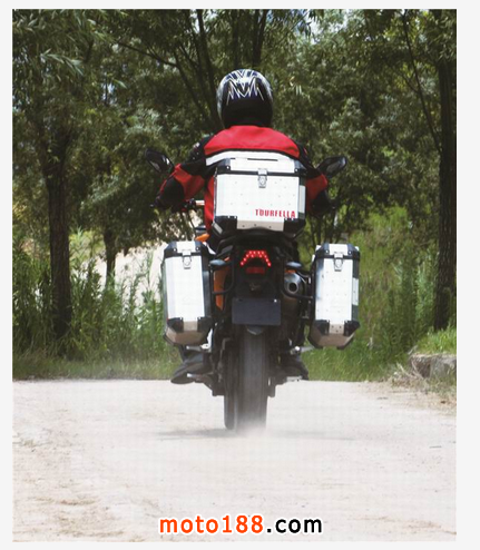 作為旗艦版的身份標(biāo)識,RX3豪華旗艦版所配置的鋁箱由國內(nèi)某知名廠商為RX3量身打造,其強(qiáng)度、耐久性都可圈可點(diǎn)。或許有些車迷懷疑右側(cè)邊箱為了照顧排氣管而太過靠外會影響操控,但事實(shí)上整個(gè)試車過程中,小編嘗試了各種路況、左右彎道,并未感到右側(cè)邊箱對操控有什么干涉。