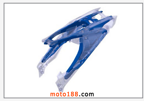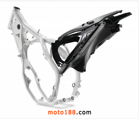 水滴形、雷射切割、由機械人銲接的車架正好將引擎緊致地包裹起來,新設(shè)計、高質(zhì)物料等皆由WP PERFORMANCE SYSTEM全程包辦,令全新車架比起舊有的省卻380g重量,成功的車架,設(shè)計自然帶來更理想的操控性。