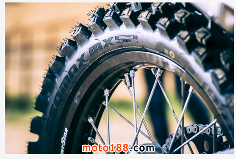 採用Dunlop MX52"block within a block"釘中有釘?shù)脑O(shè)計加強輪胎在野外極地的抓著力,這是發(fā)展自AMA Supercross與Motocross的產(chǎn)品,有效強化操控、轉(zhuǎn)向之餘明耐用性也提高了。