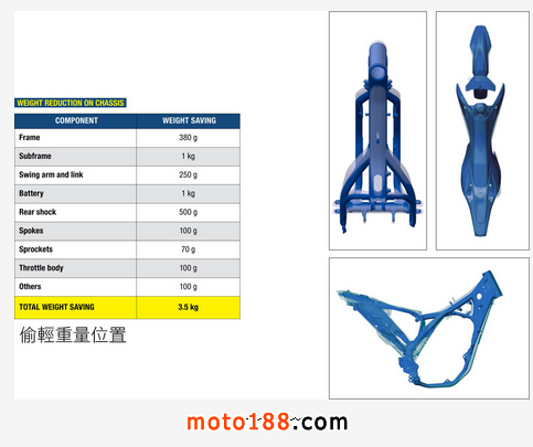 全新起動系統(tǒng)更有效率且比前輕量150g,使用小巧的韓國三星鋰電池后,整體減磅超過1kg,重新電池與電線佈局令維修更方便,只需拆除副架的數(shù)枚鑼絲即可。