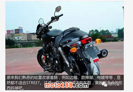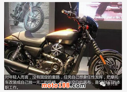 在我看來(lái),玩風(fēng)格,是STREET的唯一出路,雖然它的機(jī)動(dòng)性能是哈雷家族中的優(yōu)等生,但還是和本田、杜卡迪等高手差了不少。比格調(diào),這可是歐日對(duì)手無(wú)法企及的,如圖高瑾馨女士所說(shuō),這張空白的畫布具備無(wú)限的創(chuàng)作空間,油畫還是漫畫,比的是精神層面的東西,哈雷品牌的魅力,是遠(yuǎn)超過(guò)一部摩托車本身的。