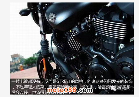 我懷疑他們?cè)燔嚨睦砟钍牵喊凑绽献孀诹粝碌呐浞?,用最好的材料,前輩的教誨,建造出一部摩托車,至于這部車能發(fā)出多少馬力,是不是好騎,甚至踩下剎車能不能及時(shí)停下來(lái),都是不重要的。STREET似乎沒(méi)了這些固執(zhí),是最容易上手的一部哈雷。離合器和油門,從行程到響應(yīng),都是很好適應(yīng)的,用某位資深哈雷車主的話:“和騎一部日本車沒(méi)啥區(qū)別”。
