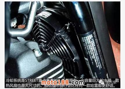 最最重要的,是全新的水冷系統(tǒng),水箱面積遠(yuǎn)大于剛剛才追加上水冷系統(tǒng)的103立方發(fā)動(dòng)機(jī),這是個(gè)“誰(shuí)用誰(shuí)知道”的好處,哈雷騎士最大的噩夢(mèng),是走走停停時(shí),騎士的胯下會(huì)被風(fēng)冷發(fā)動(dòng)機(jī)熱情地炙烤,“煎蛋”的痛苦,將不會(huì)出現(xiàn)在STREET 750上。