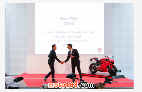 強(qiáng)調(diào)了中國(guó)市場(chǎng)在杜卡迪亞洲戰(zhàn)略中的重要性,杜卡迪摩托控股公司首席執(zhí)行官 Claudio Domenicali先生如是說(shuō)道:“從根本上來(lái)講,我們認(rèn)為中國(guó)市場(chǎng)對(duì)我們?cè)趤喼薜陌l(fā)展無(wú)疑非常重要,在此,我們也非常自豪地宣布,借助奧迪的豐富經(jīng)驗(yàn),我們必將不斷壯大前行。同時(shí),我也非常感謝駿新發(fā)展有限公司為幫助杜卡迪在中國(guó)發(fā)展和推動(dòng)所做的貢獻(xiàn)。我堅(jiān)信,成為杜卡迪中國(guó)的一個(gè)重要經(jīng)銷(xiāo)商后,他們?nèi)詫⑴c我們并肩同行,繼續(xù)保持以高品質(zhì)服務(wù)和部分經(jīng)銷(xiāo)商網(wǎng)絡(luò)發(fā)展所創(chuàng)造的良好勢(shì)頭,在行業(yè)中樹(shù)立標(biāo)桿。”