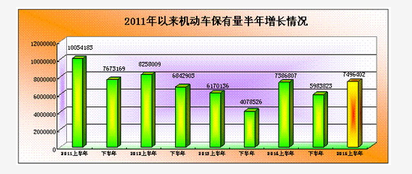 截至6月底,全國(guó)機(jī)動(dòng)車保有量為271005244輛,與2014年底相比,增加7496402輛(扣除注銷量,下同),增長(zhǎng)2.84%。與去年同期相比,增加13480225輛,增長(zhǎng)5.23%。從統(tǒng)計(jì)情況看,2014年上半年、2014年下半年和2015年上半年機(jī)動(dòng)車增量分別為7386807輛、5983823輛和7496402輛,保持較快增長(zhǎng)趨勢(shì)。
