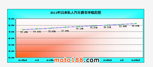 截至6月底,全國(guó)以個(gè)人名義注冊(cè)登記的機(jī)動(dòng)車保有量為224724067輛,占機(jī)動(dòng)車總量的82.92%,與2014年底相比,增加7809858輛,增長(zhǎng)3.6%。與去年同期相比,增加14114433輛,增長(zhǎng)6.7%。個(gè)人汽車134740743輛,占汽車保有量的82.64%,比2014年底上升1.17個(gè)百分點(diǎn),比去年同期上升2.33個(gè)百分點(diǎn)。其中,個(gè)人載客汽車118184676輛,占載客汽車保有量的89.79%;個(gè)人載貨汽車13366967輛,占載貨汽車保有量的63.83%。從統(tǒng)計(jì)情況看,從2011年到2015年,私人汽車擁有率提高了9.46個(gè)百分點(diǎn),個(gè)人小型、微型載客汽車數(shù)量增長(zhǎng)迅速,達(dá)到117803643輛,與2014年底相比,增加9190091輛,增長(zhǎng)8.46%;與去年同期相比,增加17302544輛,增長(zhǎng)17.22%,反映出群眾的物質(zhì)生活水平迅速提高,我國(guó)汽車化進(jìn)程發(fā)展迅猛。