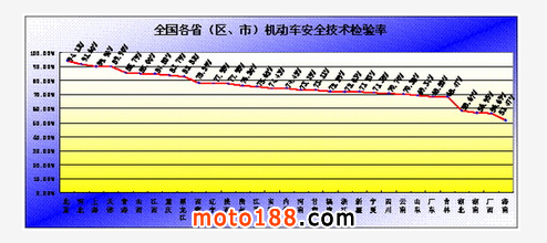 截至6月底,全國(guó)機(jī)動(dòng)車定期檢驗(yàn)率為73.36%,與去年同期相比,上升3.72個(gè)百分點(diǎn)。全國(guó)共有72200936輛機(jī)動(dòng)車逾期未參加檢驗(yàn)。載客汽車定期檢驗(yàn)率為93.77%,比去年同期上升1.95個(gè)百分點(diǎn);載貨汽車定期檢驗(yàn)率為85.4%,比去年同期上升4.49個(gè)百分點(diǎn);摩托車定期檢驗(yàn)率僅為34.86%,比去年同期上升1.25個(gè)百分點(diǎn)。有58881386輛摩托車未參加定期檢驗(yàn),占未檢驗(yàn)機(jī)動(dòng)車總量的81.55%。從各地情況看,機(jī)動(dòng)車定期檢驗(yàn)率居前五位的是北京、河北、上海、天津、青海,分別為94.11%、91.6%、89.96%、89.9%、85.79%。