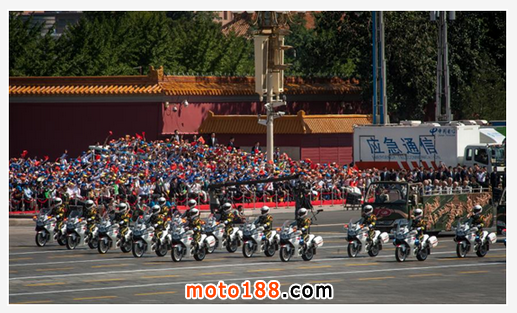2015年9月3日,我國舉行了盛大的、以“中國人民抗戰(zhàn)勝利暨世界反法西斯戰(zhàn)爭勝利70周年”為主題的閱兵儀式。去年底恢復(fù)使用的摩托車禮賓護(hù)衛(wèi)方隊(duì)是此次抗戰(zhàn)閱兵的重頭戲之一。由45輛國賓摩托車組成的方隊(duì)呈箭頭狀護(hù)衛(wèi)抗戰(zhàn)老同志方隊(duì)乘坐的敞篷車進(jìn)場,在分列式中第一個(gè)通過天安門,備受矚目。
