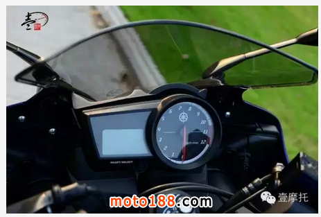 YAMAHA R15 使用液晶與指針雙搭的儀表盤,造型與 YAMAHA R1 儀表盤十分相近,信息顯示也相當(dāng)齊全。