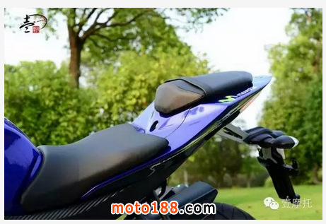 那炯炯有神的大燈仿佛可以讓你聯(lián)想道R1的大燈,油箱的設(shè)計恰到好處,趴車時可以有效支撐上半身,也彌補手把偏高趴車不易的狀況。