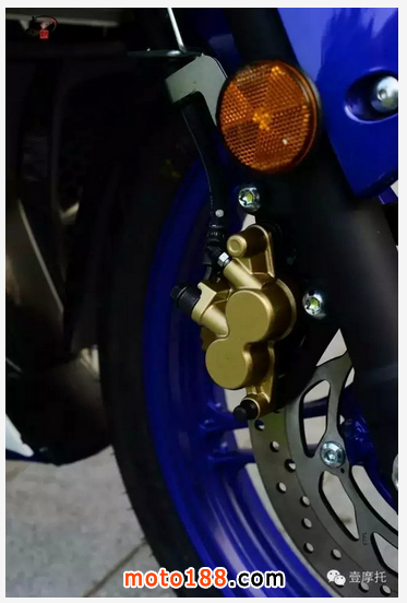 整車緩震都配合到位,在一萬多轉(zhuǎn),快斷油時的震動也能接受,由于排量才150CC,車子也輕,干重才134KG,所以車輛配備了前后單碟雙活塞卡鉗,不過大家不要擔(dān)心,經(jīng)過賽道極限測試,此車前后剎車絕對足夠使用。