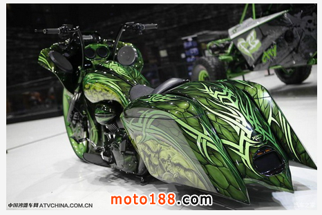 綠色骷髏哈雷摩托走在國(guó)際尖端