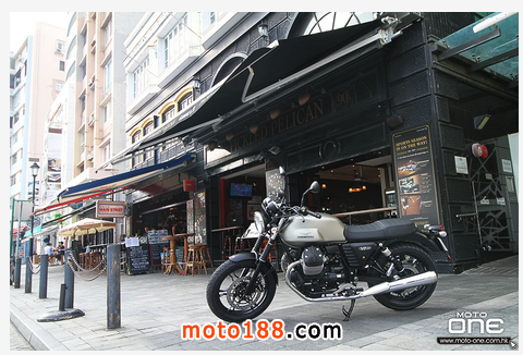 今次拍攝的地點(diǎn)經(jīng)代理協(xié)商后,最終決定與V7 II車系相同歐陸意式情懷的赤桂大街進(jìn)行,該處美景與陽光普照的環(huán)境下,V7 II車系顯得更為耀眼,由其是多處電鍍處理的V7 II Racer ABS限量版,如鏡子般反射閃閃生輝的光芒。另外,V7 II Special、STONE車款也與完全配合酒巴街的環(huán)境氣氛|展示歐陸意式的情懷。