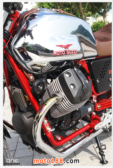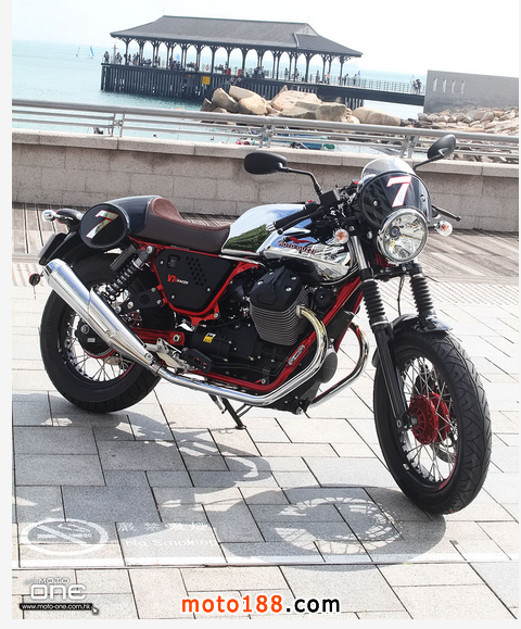 限量年產(chǎn)1000臺:每臺車架上均列明獨(dú)有限量序號,以電鍍紅色雙搖籃式車架配以黑色車身。耀目閃亮的電鍍銀色油缸上面,配置精緻烙而有MOTO GUZZ 字款的皮帶, 優(yōu)雅啡色猄皮單座位設(shè)計(jì),可調(diào)較位置的腳踏,輕量化的手把,Bitubo 可調(diào)整的避震,傳統(tǒng)鋼線轆呤,杯士軚配以傳統(tǒng)RACER 的座姿。種種不同的細(xì)節(jié)足以令V7 II RACER 成為與眾不同的車款。加上新一代六速波箱,ABS 剎車系統(tǒng)及MGCT 軌跡系統(tǒng),更加如虎潻翼。因此, V7 II RACER 是每一位電單車愛好者夢寐以求的收藏珍品。