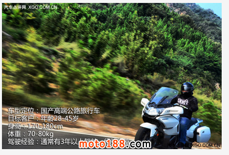 定位是國(guó)產(chǎn)高端公路旅行車,主要適合的目標(biāo)客戶年齡在28-45歲。比較適合的身高范圍在170-180cm,體重:70-80kg左右身材的騎士。此類大排量,車身較大、車重較大的高端休旅車,其實(shí)并不適合新手,比較適合有3年以上駕齡,且擁有較為豐富的駕駛經(jīng)驗(yàn)的車手。