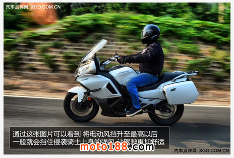 值得一提的是,創(chuàng)新設(shè)計(jì)的“電動(dòng)無極可調(diào)擋風(fēng)”更是為愜意的摩托車旅行錦上添花,可以滿足不同身高人群和不同行駛狀態(tài)下的需要。不僅可實(shí)現(xiàn)100毫米范圍內(nèi)的任意位置調(diào)整,還具有位置記憶功能,這一功能只有在國(guó)外高端品牌的頂級(jí)旅行車上才會(huì)出現(xiàn)。