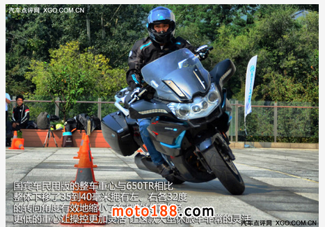 雖然這款車型車身長(zhǎng)度超過2.2米,寬度也接近1米,但是得益于與650TR相比整體下移了35到40毫米的車身高度與黃金配比的車身重量:空車狀態(tài)下前、后輪各自承擔(dān)車身50%的重量,單人駕駛時(shí)前輪配重為45%,后輪配重為55%,使得650TR-G在操控性和穩(wěn)定性方面具備了先天優(yōu)勢(shì)。依靠馬牌輪胎出色的抓地力,無論是擁擠的城市行駛還是山路壓彎,這款大型的休旅車都給我感覺非常的靈活?! ?br />