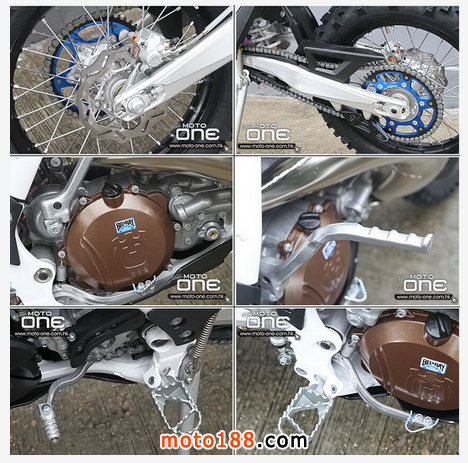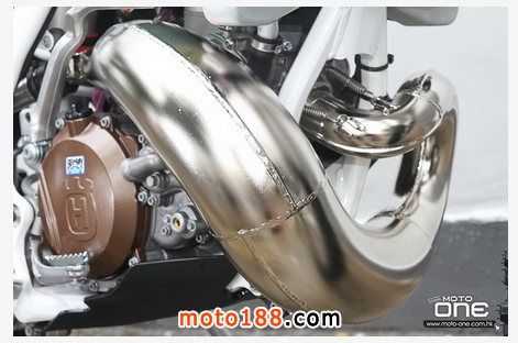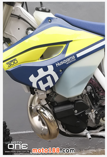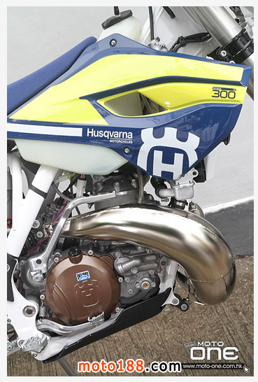 Husqvarna TE300挾54ps馬力峰值傲視云云對手,比TE250多岀50c.c.,馬力與扭力高出相當(dāng),但竟然只有104.4kg的車子乾重,僅比前者多出 0.2kg,秘密在那里?其實(shí)沒有秘密,只是大量采用剛度適中的輕合金,除了那鉻鉬合金車架,大概可以包括稱之為高拉力鋼管車架吧。當(dāng)然是非一般鋼管,這 個在TE250文 中己介紹過,在此不再重提,現(xiàn)在就著眼於她的乾重,證明在開發(fā)TE250時,各零部件已預(yù)留充裕的強(qiáng)度去應(yīng)對更大馬力/扭力的輸出,主要的零部件無需作出 改動去迎合,只是汽缸孔徑改動72mm,活塞行程維持TE250的72mm,即72x72mm缸徑/活塞行程以1:1比例實(shí)屬罕見。