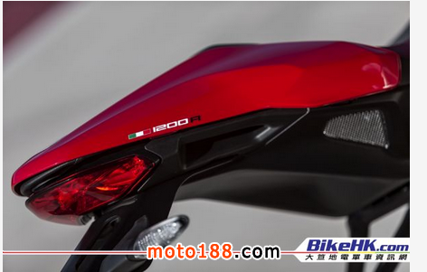 一如其他Monster車系,Monster 1200 R保留了綑桿式車架,再直接連在汽缸頂部,這亦是源自Panigale系列的賽車級造車技術(shù)。車尾副架同樣直接連接在汽缸頂上,而這個結(jié)構(gòu)同時又提供了空間給予新的乘客腳踏。新後座腳踏跟騎士腳踏分離了,讓前後座都有更多空間。騎士腳踏加入了鋁合金的腳跟護片,而腳踏面又用上了新的防滑設(shè)計。由於R版的設(shè)定預(yù)計了騎士在賽道乘騎,所以車身前後升高了15mm,而座高就上調(diào)至830mm。車頭水箱兩邊的飾板也有R字樣。