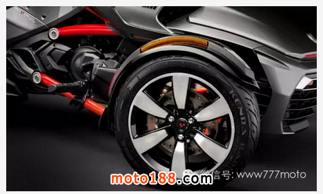 前雙A臂結(jié)合防傾桿的配置是四輪跑車最常見的配套,如今轉(zhuǎn)至重機(jī)上使大家再不會(huì)質(zhì)疑這輛《Can-AM Spyder F3-S》在結(jié)構(gòu)上的強(qiáng)度,雙A臂配合行程128.9mm的FOX避震器,比標(biāo)準(zhǔn)二輪重型機(jī)車平均多出約25%。就車體結(jié)構(gòu)而言,以鉆石型設(shè)計(jì)結(jié)合高拉力鋼管將最大性能115hp/7,250rpm馬力與13.26kgm/5,000rpm扭力的水冷并列3汽缸引擎完全包圍,原廠稱為這組新式設(shè)計(jì)為「Y」形車架,以366kg的車子干重來看,在馬力與扭力比重上超越大部份的高性能跑車。