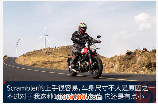 Scrambler并不一樣,盡管它是一輛杜卡迪,但似乎脾氣好了很多,就像北京金隅隊(duì)的馬布里一樣。廠家的人解釋說(shuō)因?yàn)闅忾T疊加角調(diào)整到了11°,目的就是為了要抑制那種慘無(wú)人道的爆烈輸出,從而讓更多的人進(jìn)入到杜卡迪的世界。
