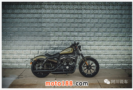 2016年款運動者883?硬漢車型提供四個顏色選擇:斜紋木炭色、斜紋黑色、橄欖金(飾有老鷹盾牌標(biāo)志的油箱徽章),或水果硬糖金色鱗片(配有火焰細(xì)節(jié)與黑色擋泥板)。
