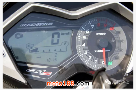 右側(cè)為轉(zhuǎn)速表加各種儀表燈顯示,左側(cè)液晶屏為檔顯、速度、油表、里程和時間。