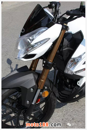 另一個比較明顯的改變是兩個粗壯的倒置前叉??磥?,現(xiàn)在倒叉已經(jīng)成為了國產(chǎn)150的潮流。