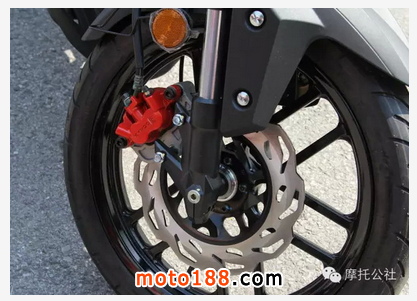 制動系統(tǒng)方面,CK1-150配備了前276mm后220mm的碟盤,且前后剎車都為單向雙活塞,這個剎車對于一輛150級別車子來說應(yīng)該足夠了。